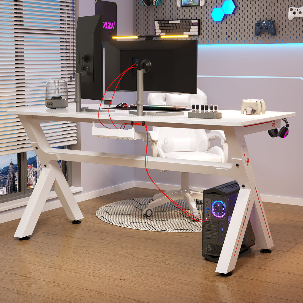 · 【Durable Build with Carbon Fiber Texture】Made with a sturdy frame and carbon fiber - textured desktop, the AZN gaming desk is built to last. The carbon fiber texture isn’t just cool—it’s also durable, resisting wear and tear. Whether you’re gaming hard at the gaming desk, working long hours at the office desk, or hitting the books at the study desk, this home office desk stands strong.