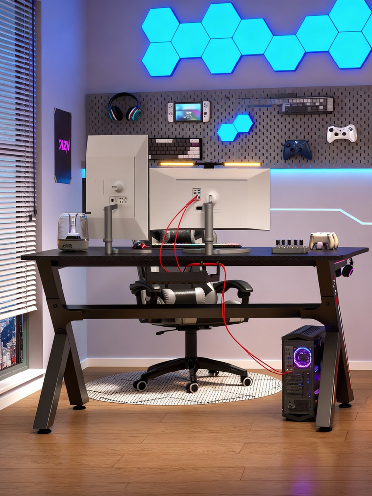 The little details on this desk are what sold me. The edges are softly rounded, which is a lifesaver for my knees. Plus, I've finally routed all my cables through the management hole. No more tangled wires on the floor!